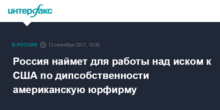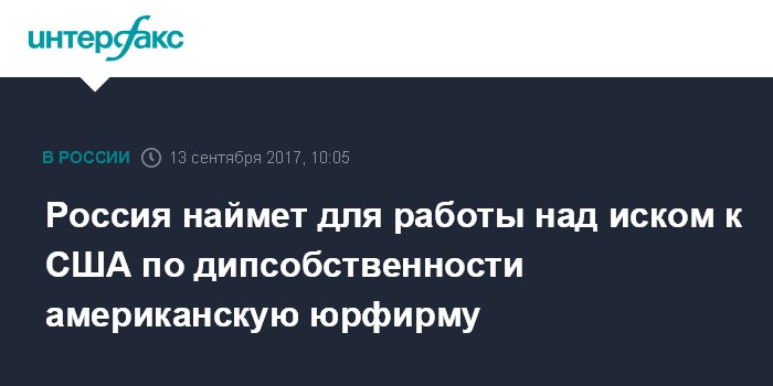Россия наймет для работы над иском к США по дипсобственности американскую юрфирму