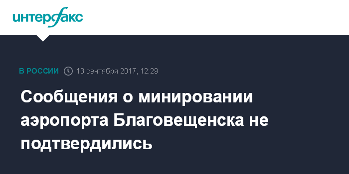 Москва. 13 сентября. INTERFAX.RU - Информация о якобы заложенном взрывном устройстве в здании аэропорта Благовещенска не повлияла на оформление пассажиров на авиарейсы, сообщает минтранс Амурской области.