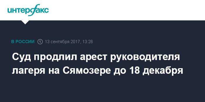 Суд продлил арест руководителя лагеря на Сямозере до 18 декабря