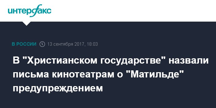 В "Христианском государстве" назвали письма кинотеатрам о "Матильде" предупреждением