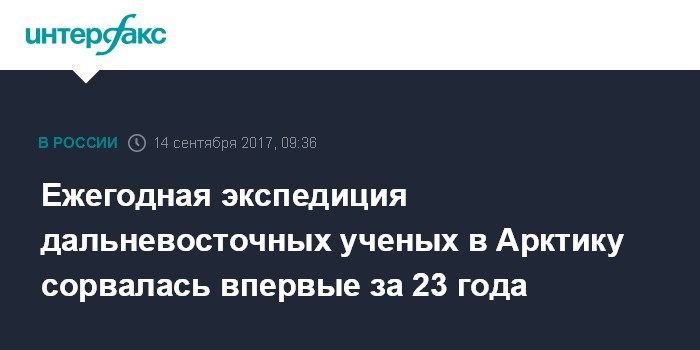 Москва. 14 сентября. INTERFAX.RU - Экспедиция по изучению климатических изменений в Арктике, которую дальневосточные ученые проводили с 1994 года, в этом году впервые не состоялась из-за неготовности научного судна.