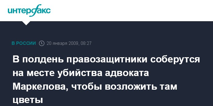 "20 января в 12:00 к месту убийства Станислава Маркелова, улица Пречистенка, дом 1, правозащитники и сочувствующие люди возложат цветы", - сообщили "Интерфаксу" в историко-просветительском и правозащитном обществе "Мемориал".