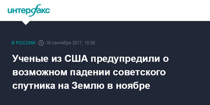 Ученые из США предупредили о возможном падении советского спутника на Землю в ноябре