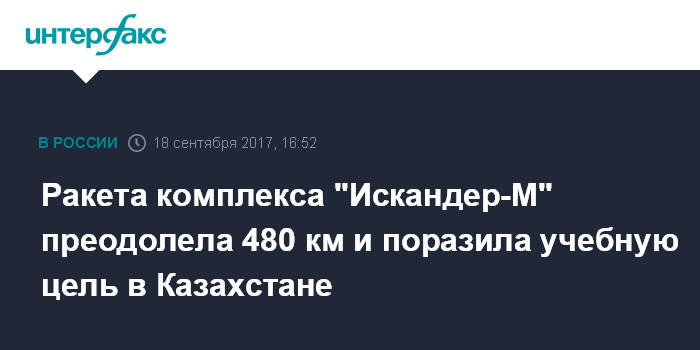 "Ракета повышенной мощности преодолела 480 км и успешно поразила цель на полигоне "Макат" (Казахстан", - сказано в сообщении, поступившем в Интерфакс-АВН" в понедельник.
