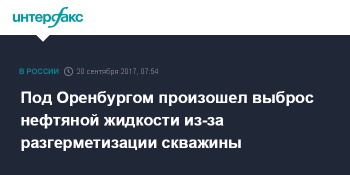 Москва. 20 сентября. INTERFAX.RU - Спасатели информируют население о разгерметизации скважины с последующим выбросом нефтяной жидкости в Оренбургском районе Оренбургской области в среду утром.