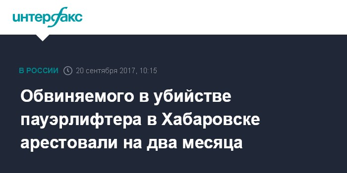 Москва. 20 сентября. INTERFAX.RU - Фигурант дела об убийстве в Хабаровске чемпиона мира и Европы по пауэрлифтингу Андрея Драчева Анар Алияр оглы Аллахверанов проведет в СИЗО два месяца.