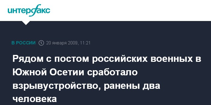 Москва. 20 января. INTERFAX.RU - В районе осетинского села Ахмадзи Ленингорского района Южной Осетия произошел взрыв, в результате ранены двое военнослужащих.