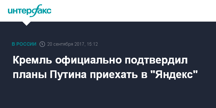 Кремль официально подтвердил планы Путина приехать в "Яндекс"