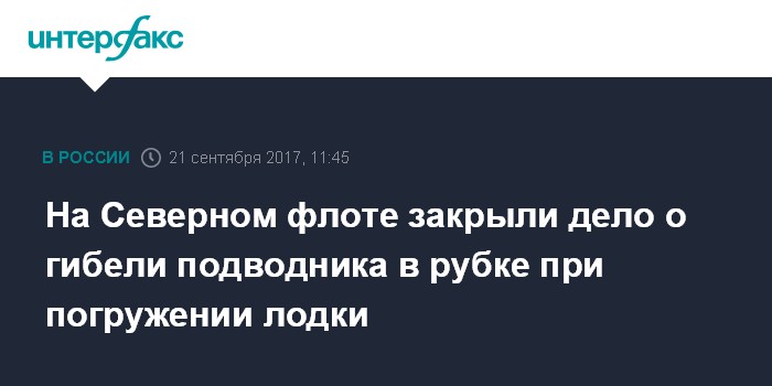 Как сообщалось, в 2015 году во время погружения подводной лодки военнослужащий по неустановленной причине остался в рубке, его тело было обнаружено уже после всплытия. О подробностях происшествия в военном следственном управлении СКР по Северному флоту не сообщали.