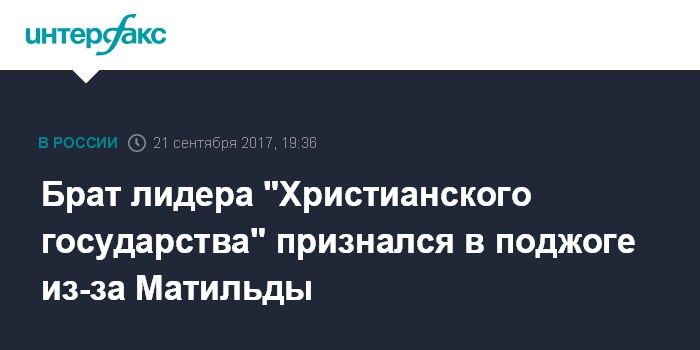 Брат лидера "Христианского государства" признался в поджоге из-за Матильды
