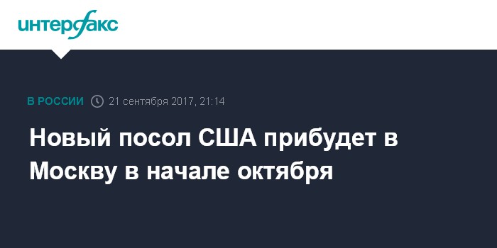 Москва. 21 сентября. INTERFAX.RU - Кандидат на пост посла США в РФ Джон Хантсман, в случае утверждения на этот пост, прибудет в Москву в начале октября, сообщил в четверг завершающий свою миссию американского посла Джон Теффт.