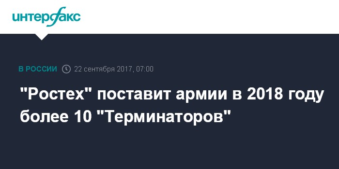 В корпорации заявили, что идут работы над новой моделью "Терминатора". Ранее вице-премьер РФ Дмитрий Рогозин сообщил, что "Терминатор" после успешного применения в Сирии резко повысил свой экспортный потенциал. "Пример Сирии показал, что эта машина - именно для такого рода боевых действий в городских условиях", - заявил он. Начальник Главного автобронетанкового управления Минобороны РФ генерал-лейтенант Александр Шевченко сообщил в сентябре, что "Терминатор" будет принят на вооружение в этом году. По его словам, интерес к БМПТ проявили уже многие страны, в первую очередь, Израиль и Сирия. Партию БМПТ "Терминатор-1" ранее купил Казахстан. Модернизированную боевую машину - "Терминатор-2" - "Уралвагонзавод" демонстрировал, в частности, на форуме "Армия-2016".