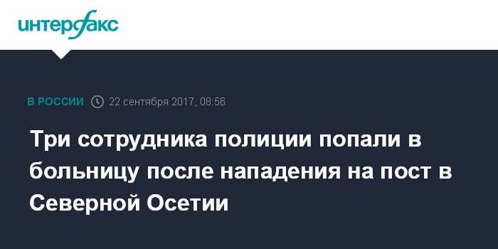 Москва. 22 сентября. INTERFAX.RU - Трое полицейских госпитализированы после нападения на пост полиции в Моздокском районе республики Северная Осетия - Алания, сообщили "Интерфаксу" в пятницу в пресс-службе МВД по региону.