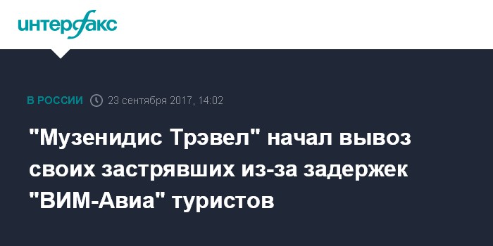 "Музенидис Трэвел" начал вывоз своих застрявших из-за задержек "ВИМ-Авиа" туристов