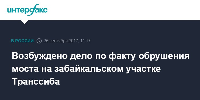 Возбуждено дело по факту обрушения моста на забайкальском участке Транссиба