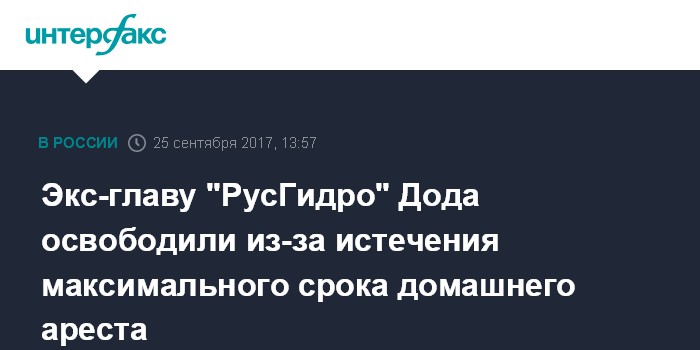 Экс-главу "РусГидро" Дода освободили из-за истечения максимального срока домашнего ареста