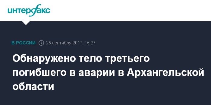 Москва. 25 сентября. INTERFAX.RU - Поисковики обнаружили тело третьего погибшего в результате ДТП в Архангельской области. Об этом сообщает пресс-служба регионального МВД в понедельник.