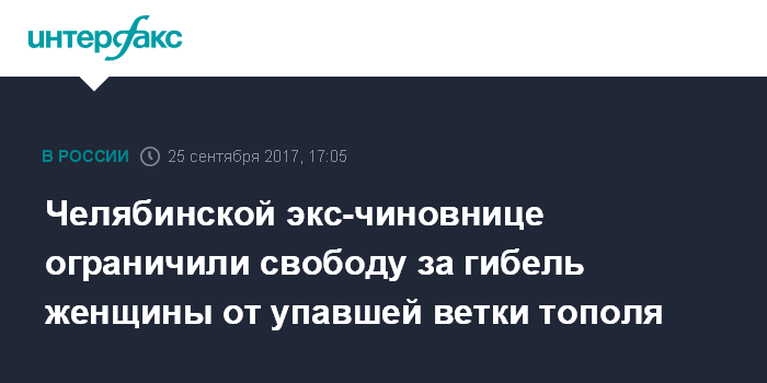 Челябинской экс-чиновнице ограничили свободу за гибель женщины от упавшей ветки тополя
