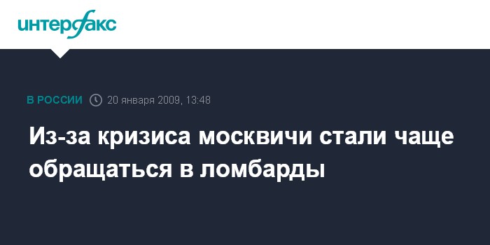 Москва. 20 января. INTERFAX.RU - Из-за кризиса москвичи стали чаще посещать столичные ломбарды, причем среди клиентов появились довольно состоятельные люди, чего раньше не было, сообщил в интервью "Интерфаксу" руководитель ОАО Московского городского комбината ломбардов "Мосгорломбард" Вадим Каращук.