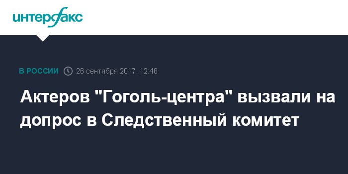 Москва. 26 сентября. INTERFAX.RU - Актеров "Гоголь-центра" вызвали на допрос в Следственный комитет. Об этом сообщает на своей странице в фейсбуке поэт Игорь Иртеньев.