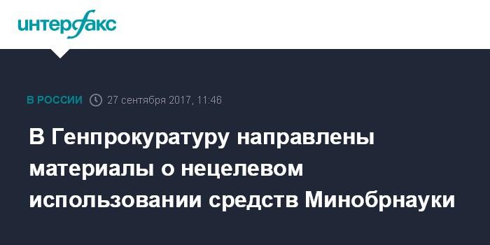 В Генпрокуратуру направлены материалы о нецелевом использовании средств Минобрнауки