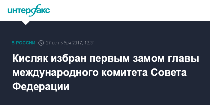 Ранее, в июле, информированный источник сообщил "Интерфаксу", что бывший посол России в США Кисляк после сентябрьских региональных выборов, скорее всего, станет сенатором и заместителем главы Комитета Совета Федерации по международным делам Константина Косачева.