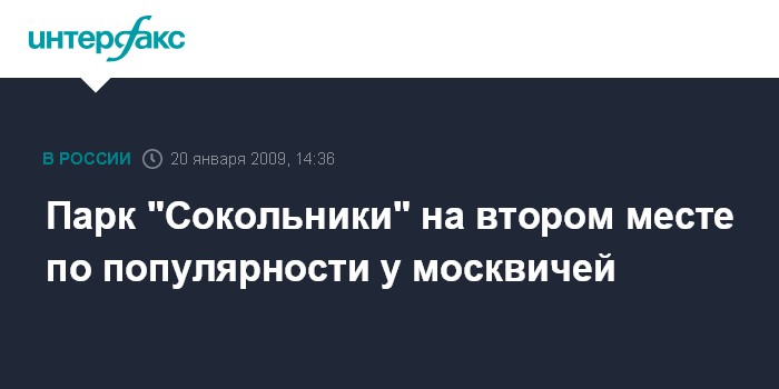 "Такие исследования (о посещаемости - ИФ) проводятся регулярно. Они показывают, что на первом месте по популярности у москвичей и гостей столицы Парк Горького, на втором - Сокольники, на третьем - Измайловский парк", - пояснил А.Демаков.