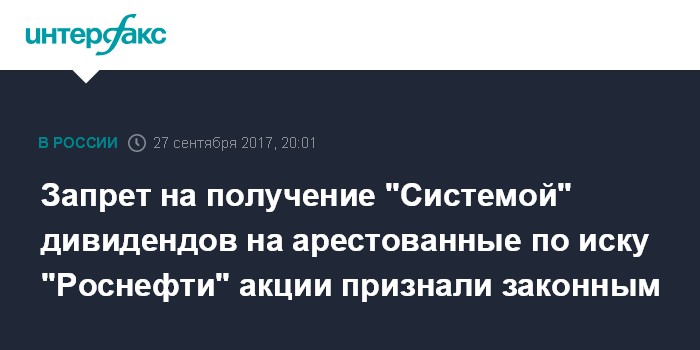Запрет на получение "Системой" дивидендов на арестованные по иску "Роснефти" акции признали законным