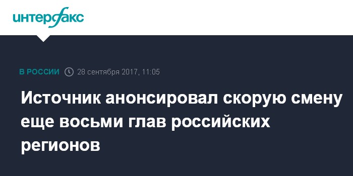 "В ближайшее время в плане ротации своих постов могут лишиться от пяти до восьми глав российских регионов", - сказал собеседник агентства.