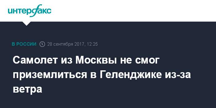 Москва. 28 сентября. INTERFAX.RU - Аэропорт Геленджика в четверг из-за штормового ветра не смог принять рейс из Москвы, самолет совершил посадку в Анапе, сообщили "Интерфаксу" в пресс-службе компании "Базэл Аэро" (управляет аэропортами Краснодарского края)