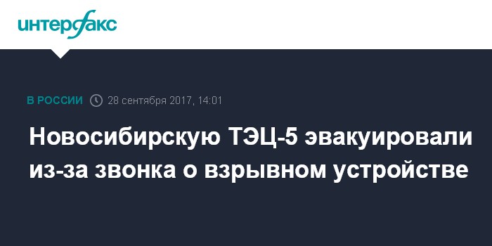 Москва. 28 сентября. INTERFAX.RU - Около 250 человек эвакуированы с Новосибирской ТЭЦ-5 после звонка о якобы заложенном взрывном устройстве, сообщается четверг на сайте Минэнерго РФ.