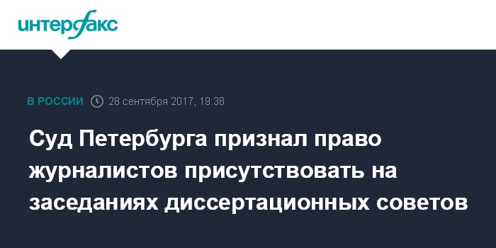 Суд Петербурга признал право журналистов присутствовать на заседаниях диссертационных советов