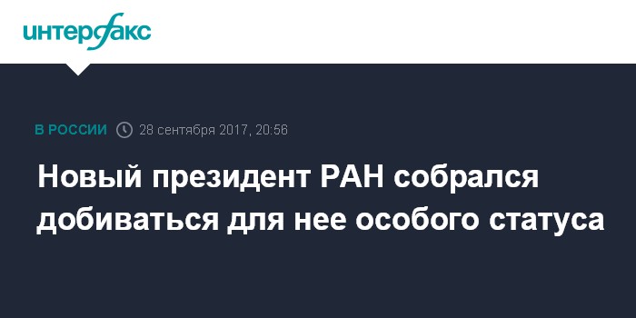 "Конкретно это должно называться: государственная академия наук. Статус - особый. И дальше должно быть перечислено, что дает такой особый статус", - сказал глава РАН.