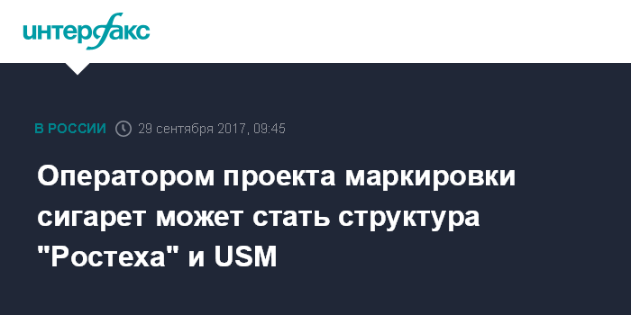 Оператором проекта маркировки сигарет может стать структура "Ростеха" и USM