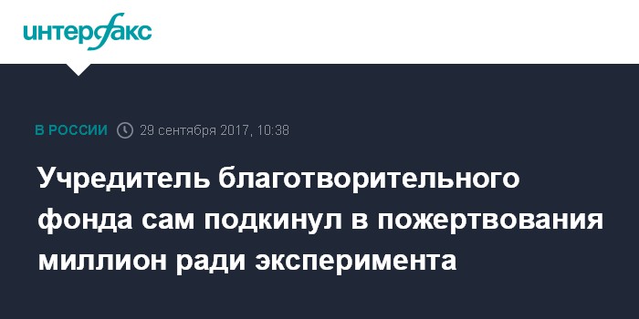 Учредитель благотворительного фонда сам подкинул в пожертвования миллион ради эксперимента