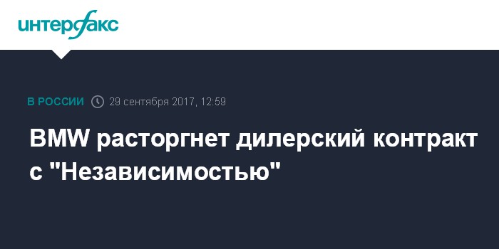 Москва. 29 сентября. INTERFAX.RU - Немецкий автоконцерн BMW расторгнет дилерский контракт с ГК "Независимость, говорится в сообщении представительства марки "BMW Group Россия".