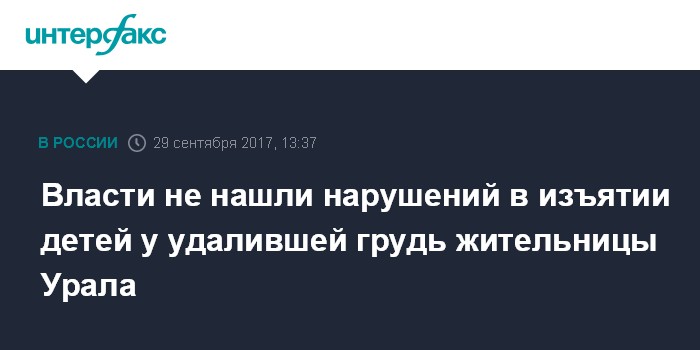 Власти не нашли нарушений в изъятии детей у удалившей грудь жительницы Урала