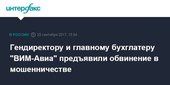 Гендиректору и главному бухглатеру "ВИМ-Авиа" предъявили обвинение в мошенничестве
