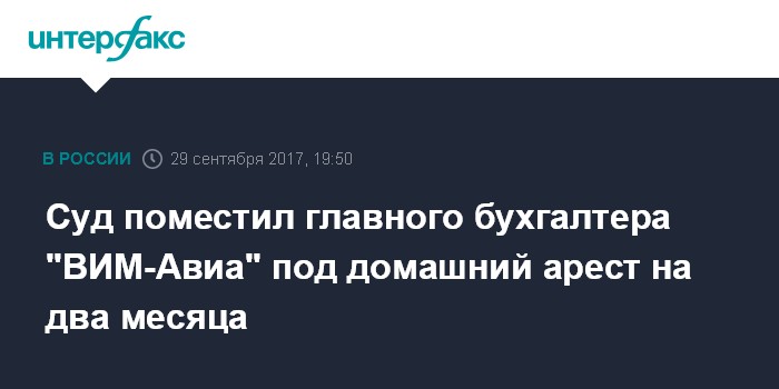 Суд поместил главного бухгалтера "ВИМ-Авиа" под домашний арест на два месяца