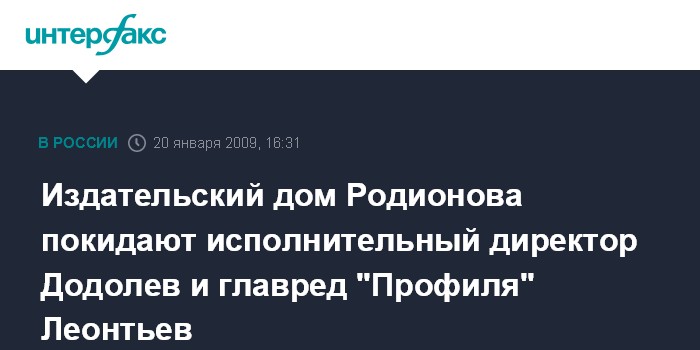 Москва. 20 января. INTERFAX.RU - Исполнительный директор Издательского дома Родионова Евгений Додолев покинул свой пост.