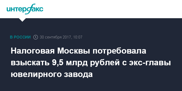 Налоговая Москвы потребовала взыскать 9,5 млрд рублей с экс-главы ювелирного завода