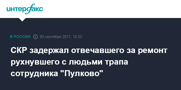СКР задержал отвечавшего за ремонт рухнувшего с людьми трапа сотрудника "Пулково"