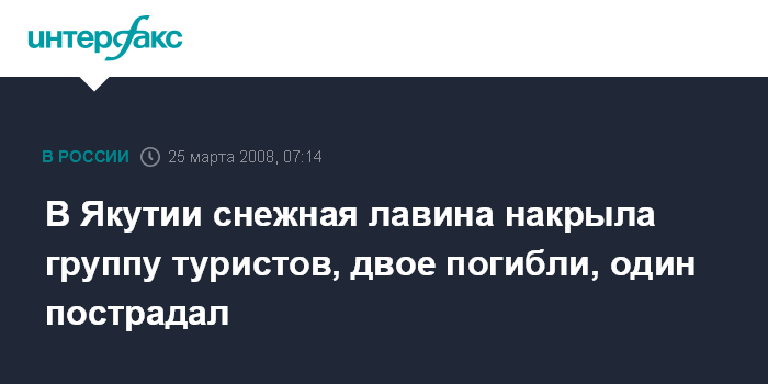 Якутск. 25 марта. ИНТЕРФАКС-ДАЛЬНИЙ ВОСТОК - В Оймяконском районе Якутии сошедшая с горы Палатка снежная лавина погребла под собой троих членов туристической группы, двое из них погибли, один получил серьезные травмы.