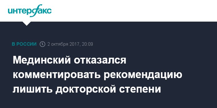 Мединский отказался комментировать рекомендацию лишить докторской степени