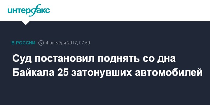 Москва. 4 октября. INTERFAX.RU - Кировский районный суд Иркутска по требованию прокуратуры обязал администрацию Байкало-Ангарского бассейна внутренних водных путей поднять автомобили, затонувшие в озере Байкал, а также в его главном притоке реке Селенге и единственной вытекающей из него реке Ангаре.