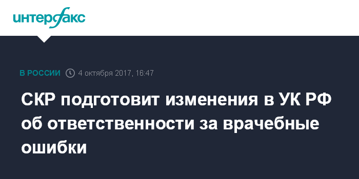 СКР подготовит изменения в УК РФ об ответственности за врачебные ошибки