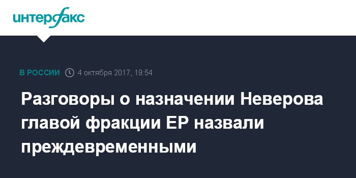 Москва. 4 октября. INTERFAX.RU - Разговоры о том, что Сергей Неверов возглавит фракцию "Единая Россия" в Госдуме, преждевременны, сказала "Интерфаксу" в среду пресс-секретарь Неверова Лилия Бирюкова.