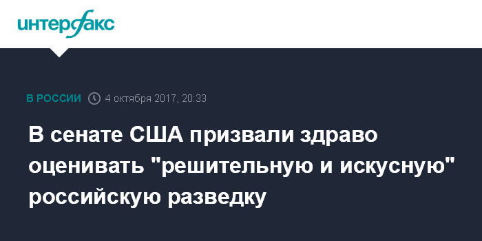 В сенате США призвали здраво оценивать "решительную и искусную" российскую разведку