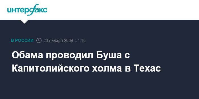 Вашингтон. 20 января. INTERFAX.RU - На ступенях восточного крыла Капитолия новый президент США Барак Обама проводил своего предшественника Джорджа Буша. На вертолете Буш с супругой отправился на военно-воздушную базу Эндрюс, откуда он самолетом вылетит домой в Техас.