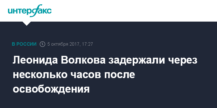 Москва. 5 октября. INTERFAX.RU - Начальника штаба оппозиционера Алексея Навального - Леонида Волкова снова задержали, сообщил в четверг "Интерфаксу" юрист Фонда борьбы с коррупцией (ФБК) Иван Жданов.